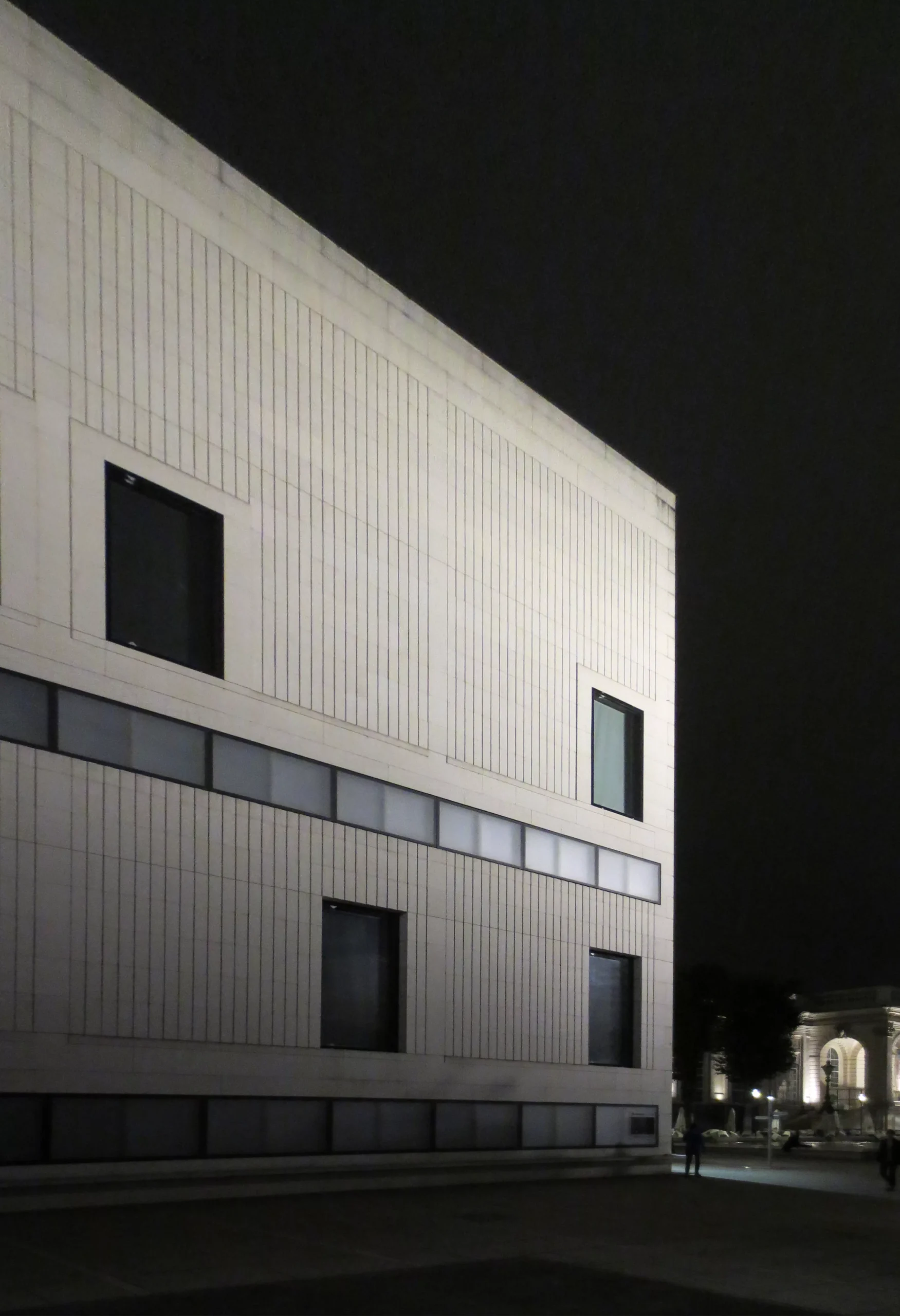 The Challenge: Seamless Geometry The project demanded a natural stone that could transform a geometric cube into a living, breathing monolith. The cladding had to appear perfectly uniform from a distance, yet reveal a rich, natural texture upon closer inspection. It also needed to provide a striking visual contrast to the dark basalt facade of the neighboring MUMOK building.